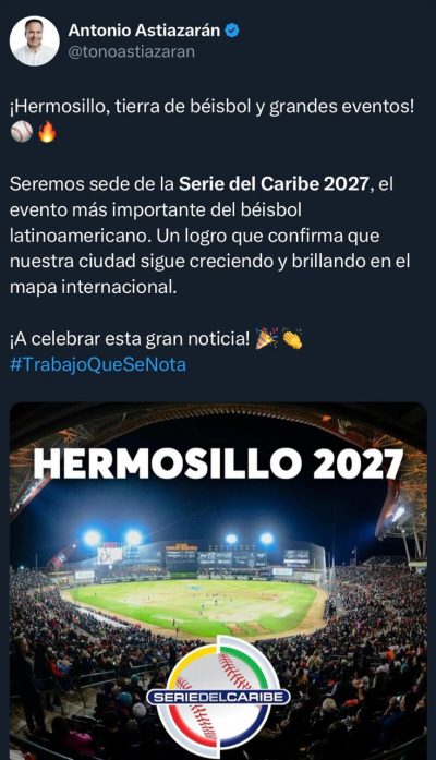 A propósito, Astiazarán dio otro “jomrón” al anunciar que, en 2027, la Serie del Caribe de béisbol será en Hermosillo, cuando ya habrán terminado las obras transformadoras en esta ciudad cuyo nombre sobresale en muchas partes del mundo. Enhorabuena.