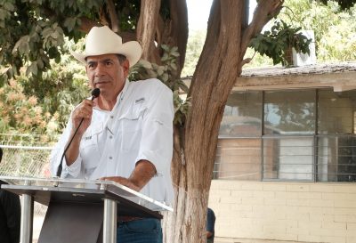 Al tomar la palabra, el alcalde Alberto ‘Beto’ Vázquez agradeció a la SAGARHPA por iniciar este gran proyecto en beneficio de los ganaderos de la región del Valle del Mayo y del Yaqui en la ‘Tierra de los Generales’.