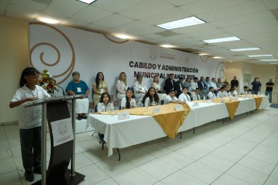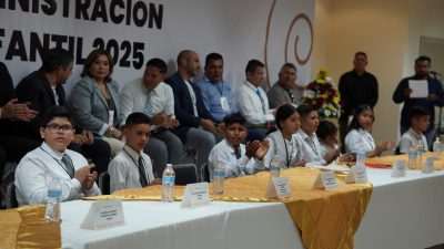 En un evento lleno de emociones, acompañado por la primera dama, Andrea Cota Murillo, el alcalde ‘Beto’ Vázquez reconoció la importancia de la participación de los niños y niñas en el servicio público y la toma de decisiones que contribuyan al bienestar de los huatabampenses.