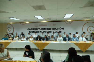 Huatabampo, Sonora; 29 de abril de 2025.- En el marco del Día del Niño y la Niña 2025, el presidente municipal, Alberto ‘Beto’ Vázquez, tomó protesta a los integrantes del Cabildo Infantil 2025 y a Funcionarios Infantiles por un día de la administración 2024-2027.