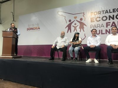 En el evento, encabezado por discursos de parte del Senador Heriberto Aguilar y el Secretario de Desarrollo Social del Estado de Sonora Fernando Rojo de la Vega, se hizo entrega de 1,222 tarjetas bancarias con 7,500 pesos cada una para las familias apoyadas, recibiendo estas subsecuentemente 2,500 pesos bimestrales para un total de 15,000 pesos al año.
