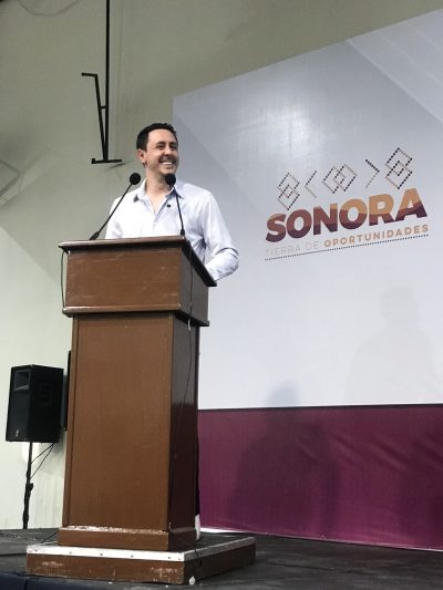 Por el bien de todas y todos, primero los pobres. Vamos a seguir avanzando juntos. Este principio humanista que ha dictado el gobernador se ha extendido a lo largo y ancho de Sonora.”- comentó el Senador Heriberto Aguilar. El Gobernador Durazo estaba previsto a asistir al evento, pero no pudo llegar al estar atendiendo necesidades en la sierra del estado.