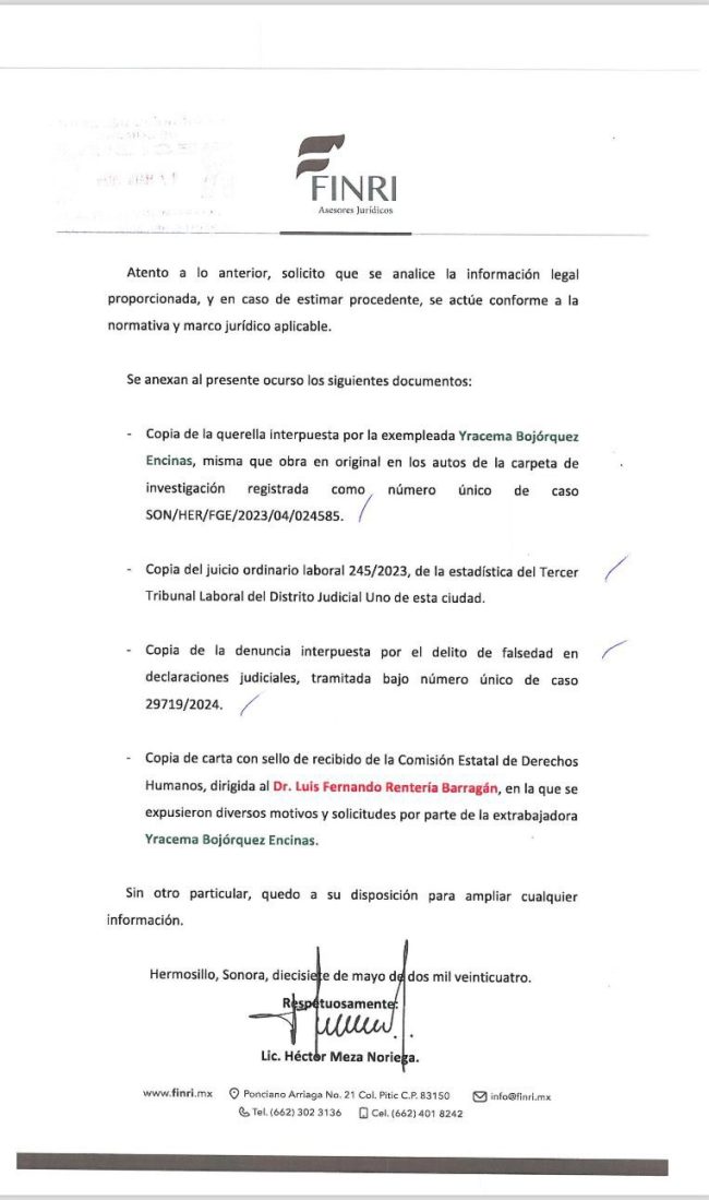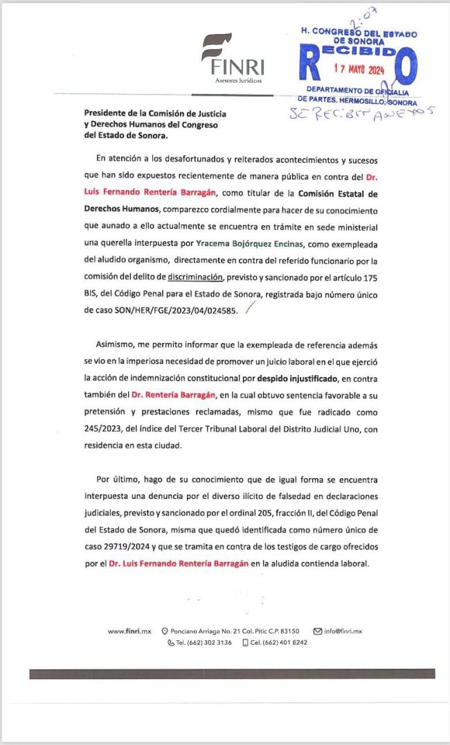 Para 2023 las críticas ya no provenían solo de extrabajadores. El abogado Santos Morales Borbón, ex visitador adjunto de la CEDH, envió una carta pública al gobernador Alfonso Durazo denunciando lo que calificó como una gestión marcada por abusos de autoridad, opacidad y falta de resultados.